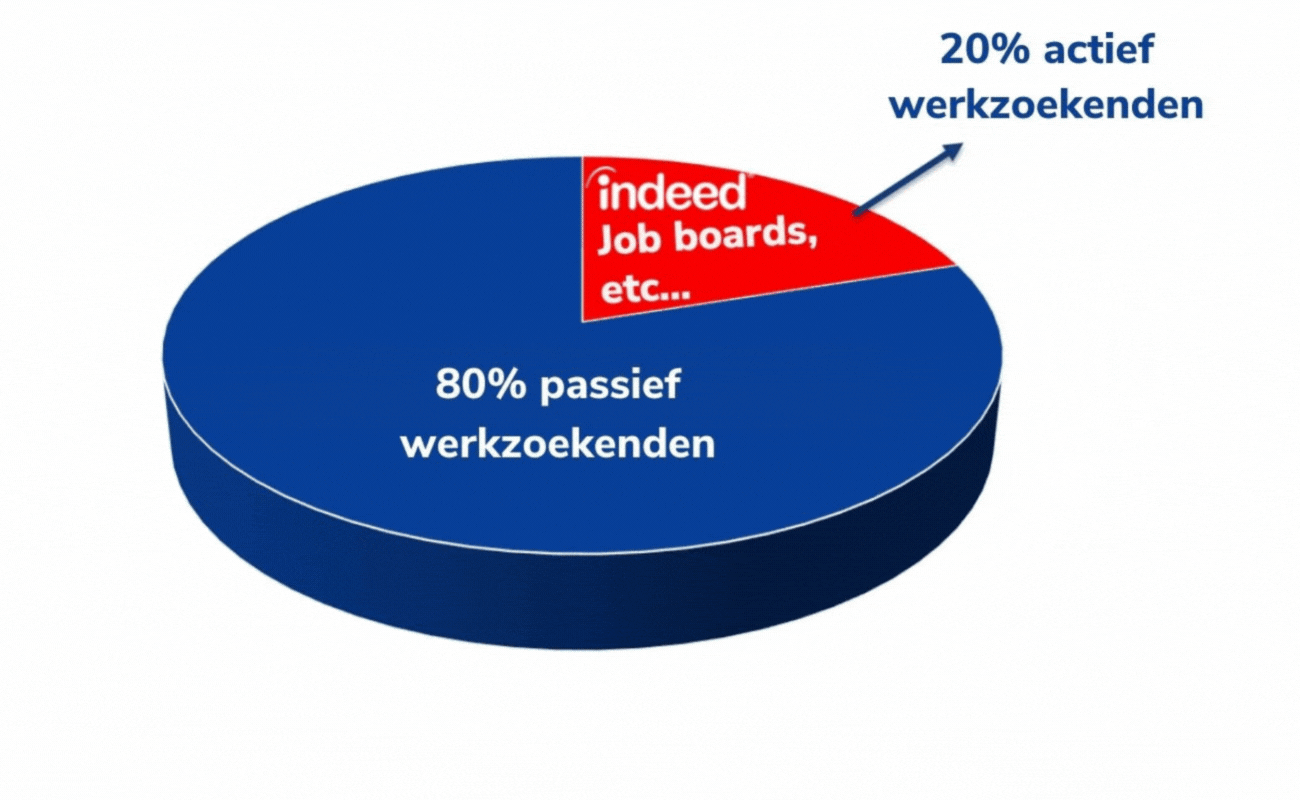 Veel werkgevers plaatsen vacatures op Indeed en andere job boards. Slechts 20% van de arbeidsmarkt is hier te vinden. Het gevolg is dat er teveel concurrentie is en te weinig passende kandidaten.